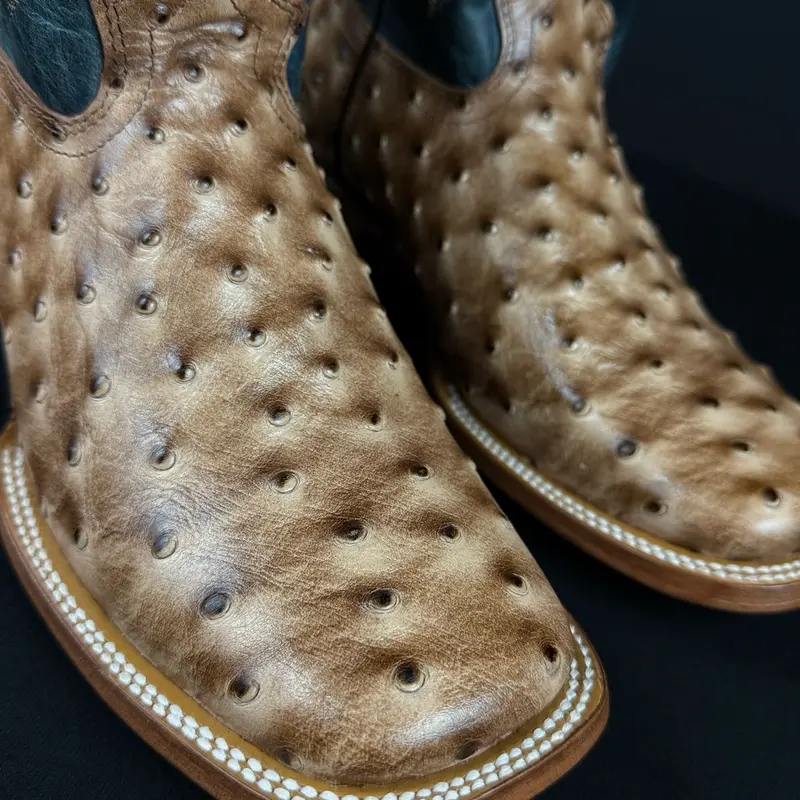 Step into the spirit of the American West with the Ave Print Orix Blue Jean Boots—where rugged tradition meets standout craftsmanship. The full quill ostrich vamp brings natural texture, softness, and unmistakable luxury, while the deep turquoise shaft adds a bold Western character that turns every step into a statement.