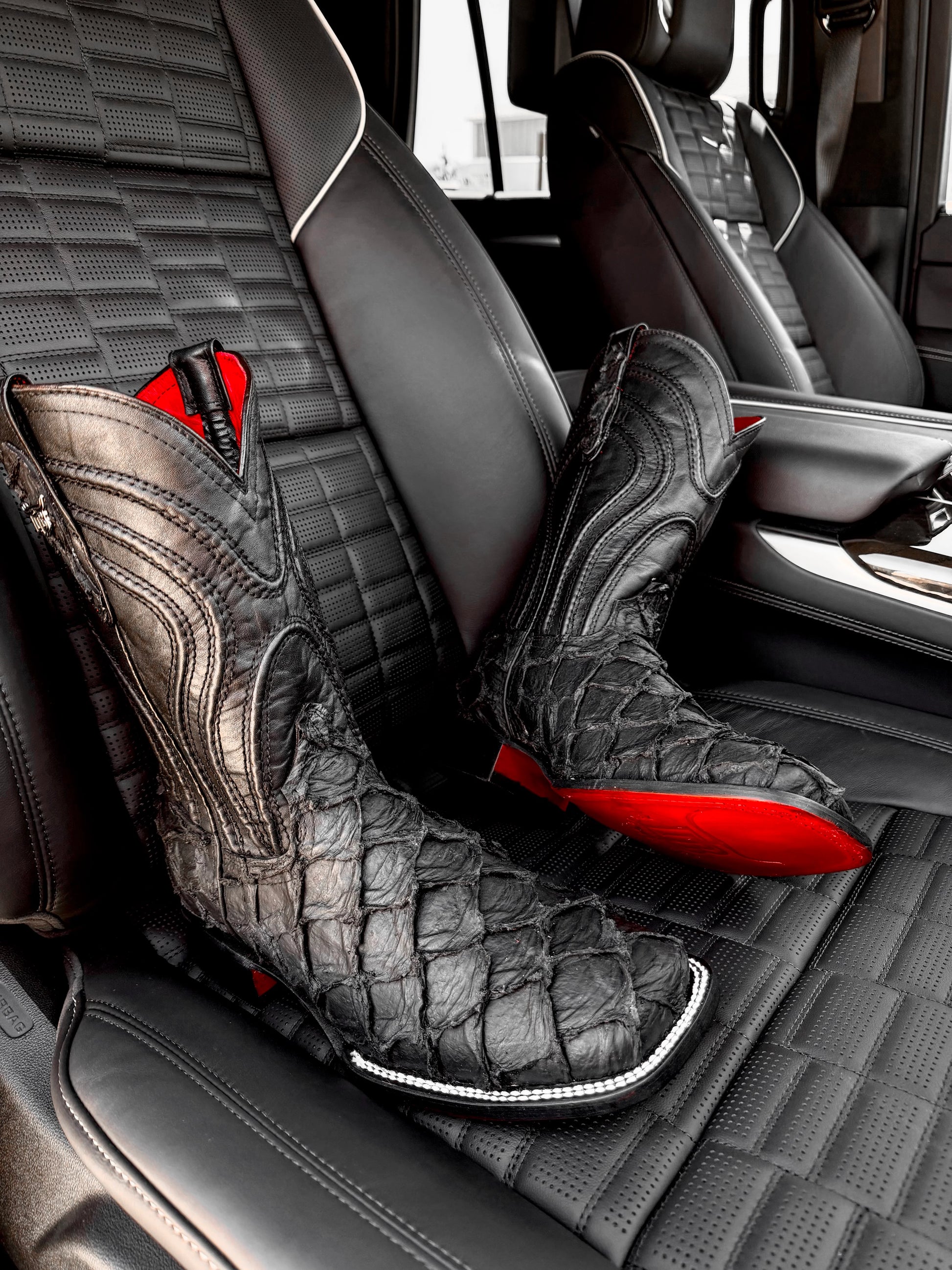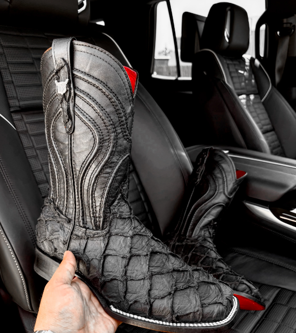 Matte Black Jumbo Pirarucu Leather Boots - Square Toe