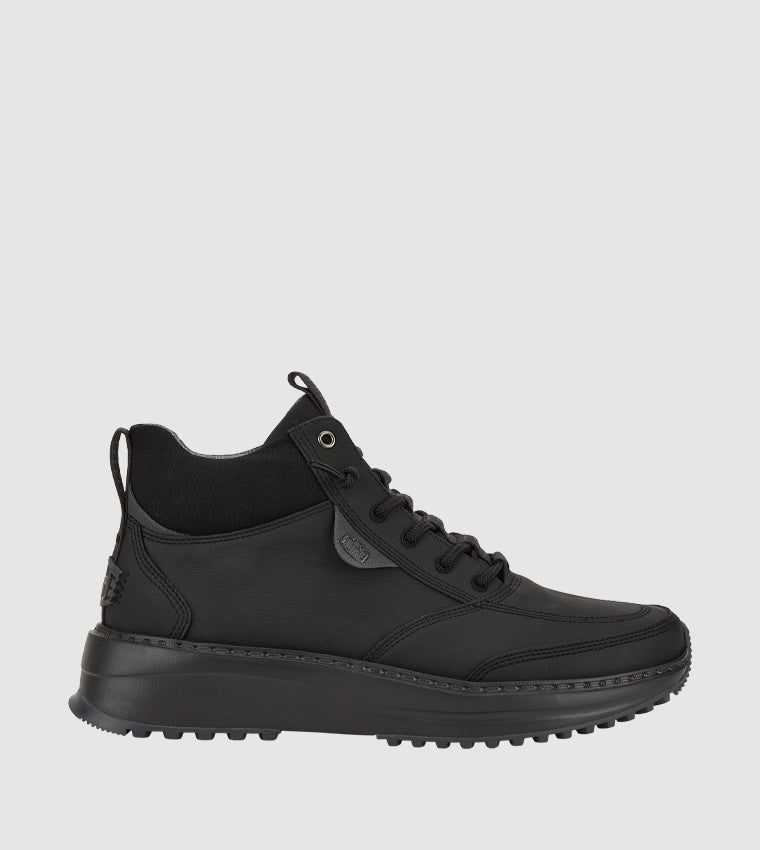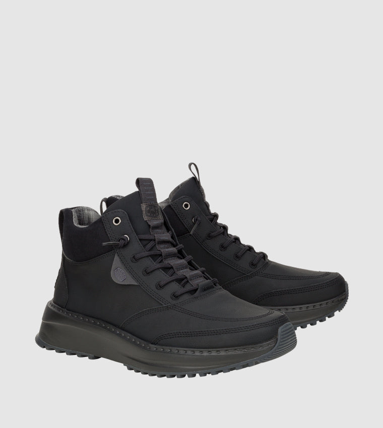 Made with a synthetic faux leather material treated with a water-repellent finish to help keep feet dry in light rain or damp conditions. -